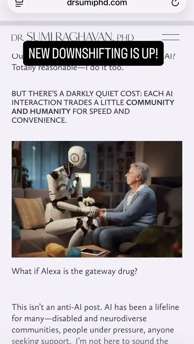 Everything has gotten harder. Social safety nets are thin. Community is fragmented. Daily demands are high. Mental health support is uneven. Mix that with a culture that glorifies overwork, and it’s no wonder we reach for bots to reduce overwhelm. It makes sense. And yet, it comes at a cost.